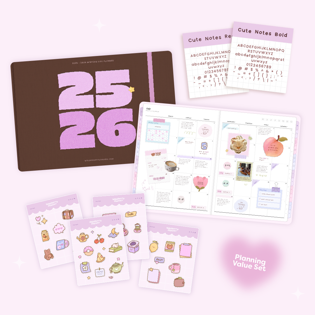 Save 25% when you bundle a Digital Planner, Sticker Set, and Font ♡ limited time only!