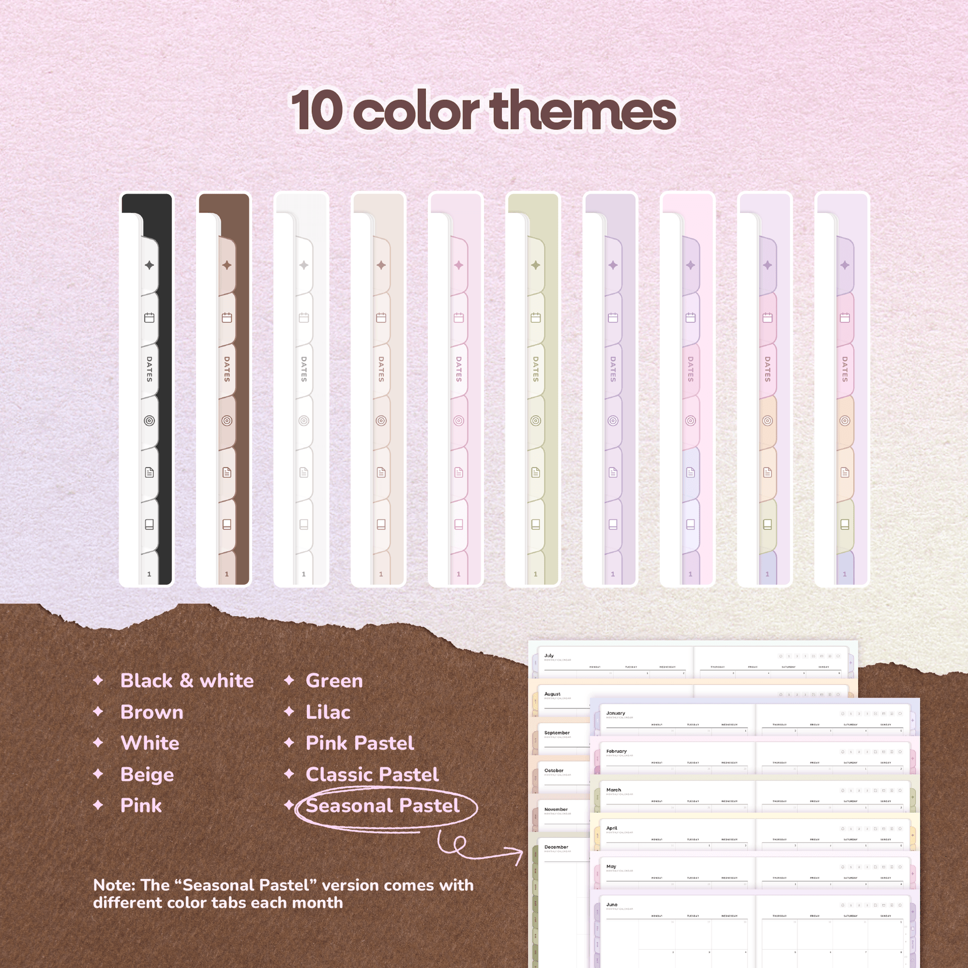 • Pastel Seasonal (unique colour tabs each month)