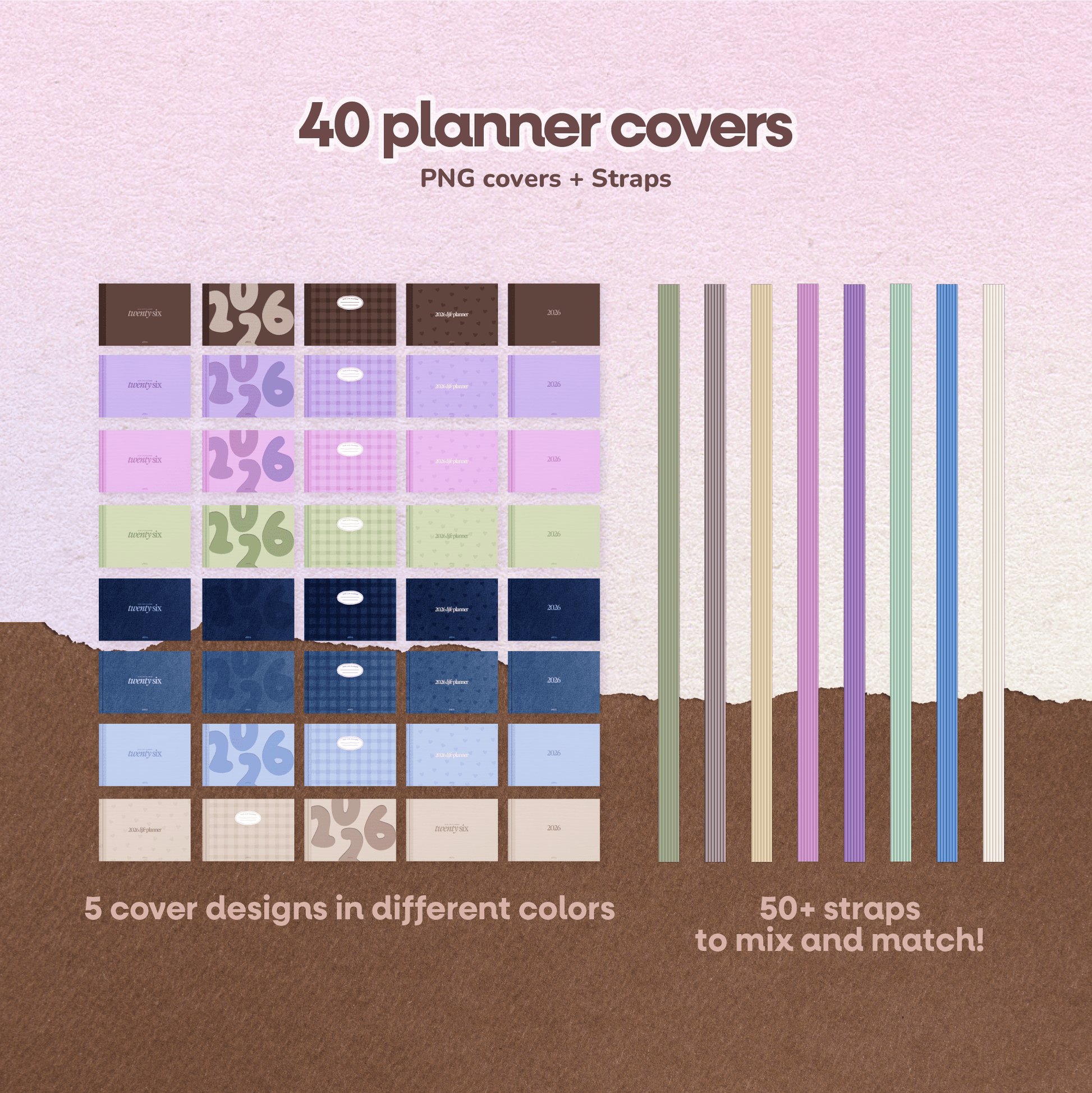 • 40 planner covers + 50 cover straps to mix and match
