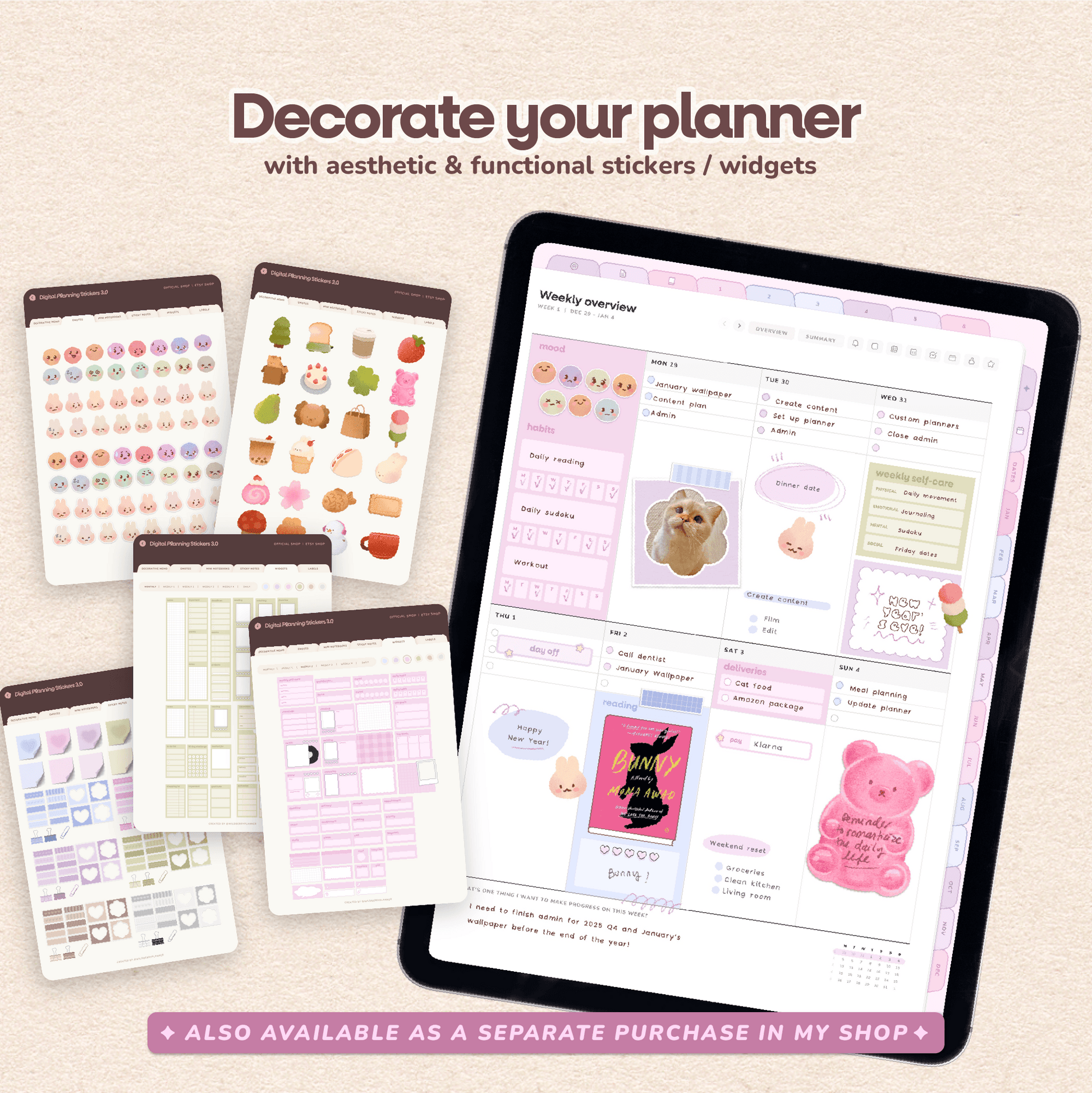 • 2,000+ decorative stickers: memos, emotes, mini notebook covers, widgets (6 colours)