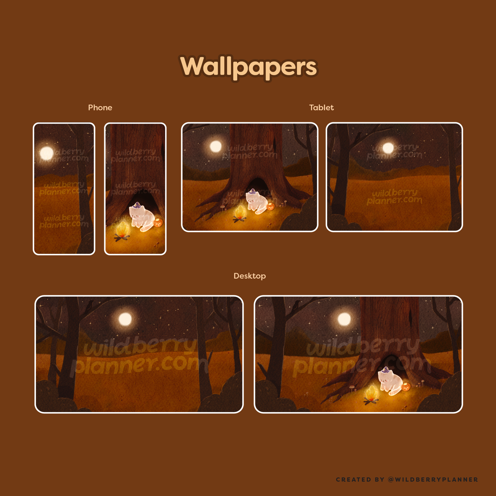♡ 1 Animated Phone Wallpaper: no sound version + 2 sound versions (campfire crackling and campfire with purring)
