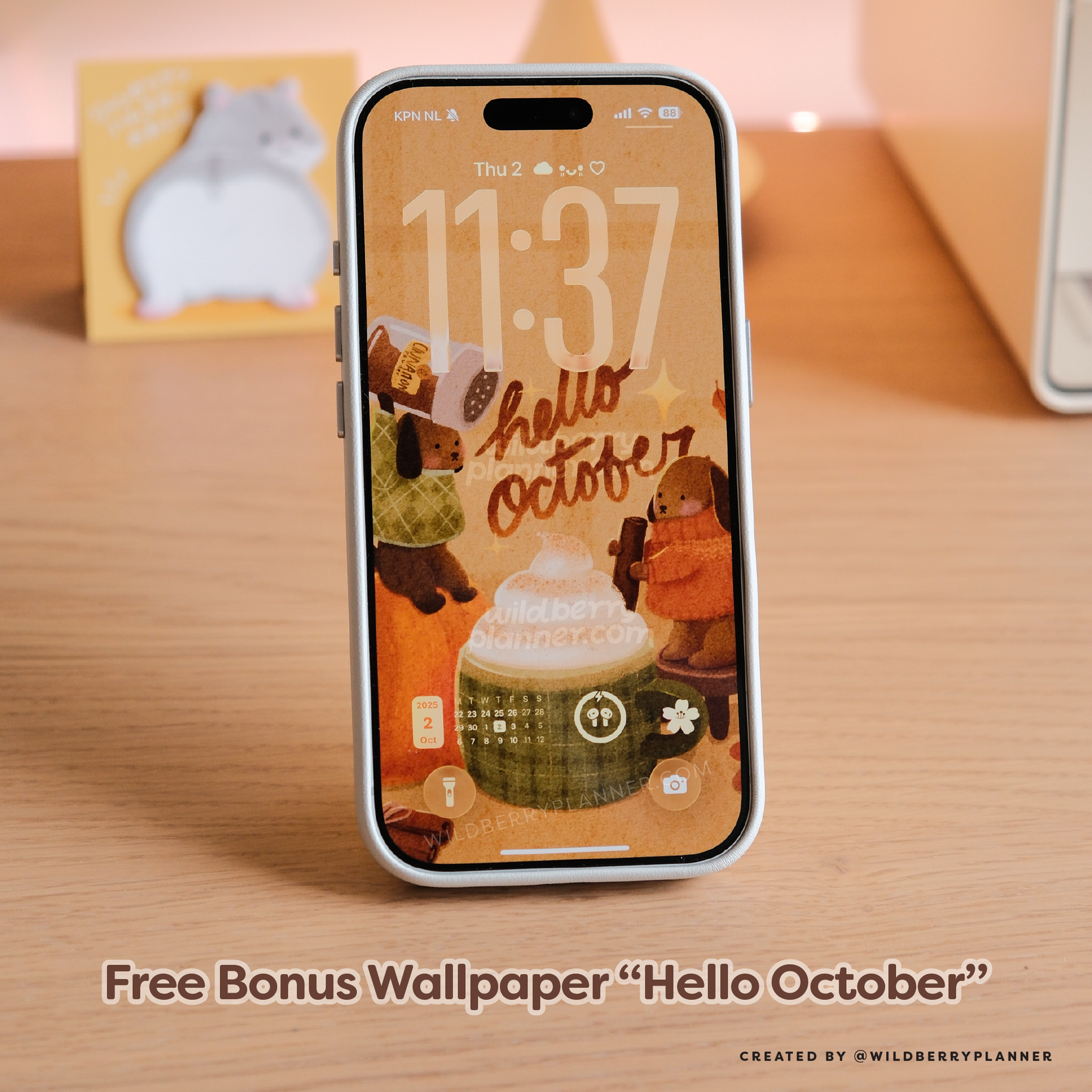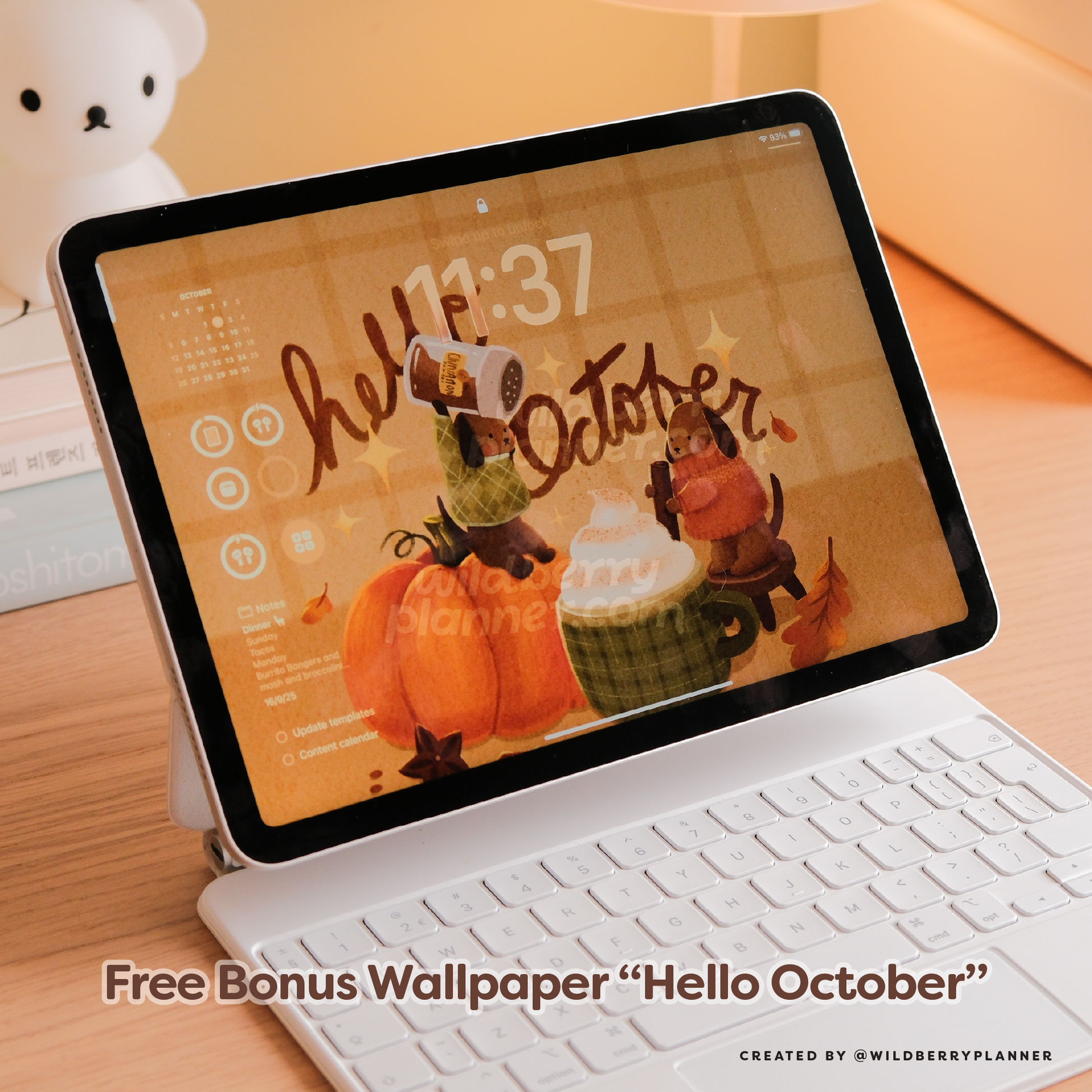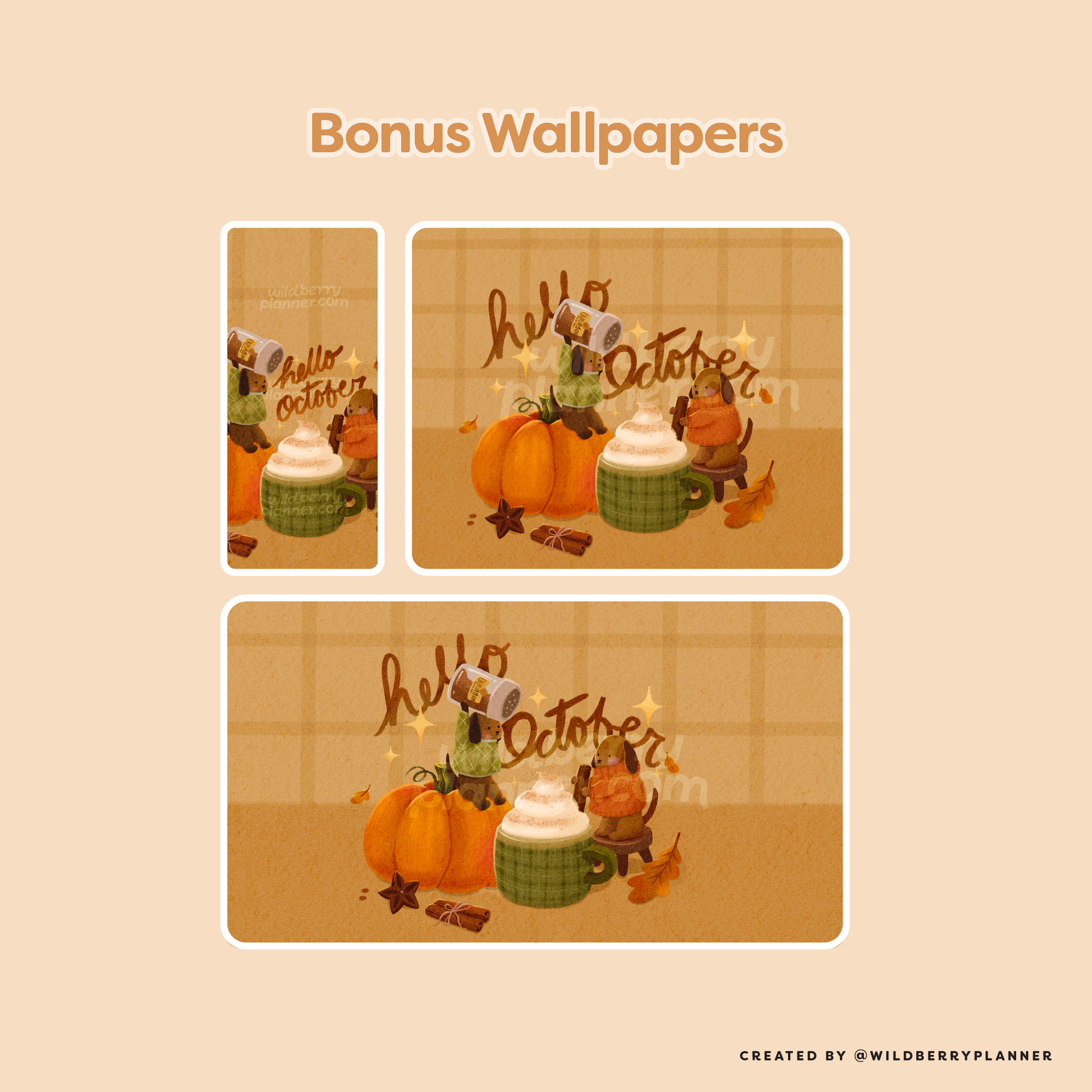 • 3 Bonus Wallpapers with "Hello October" lettering: Phone, Tablet and Desktop.